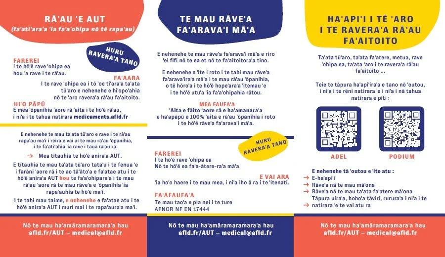 Au-delà des vidéos, nous poursuivons nos efforts pour proposer des supports de communication en français et en tahitien.